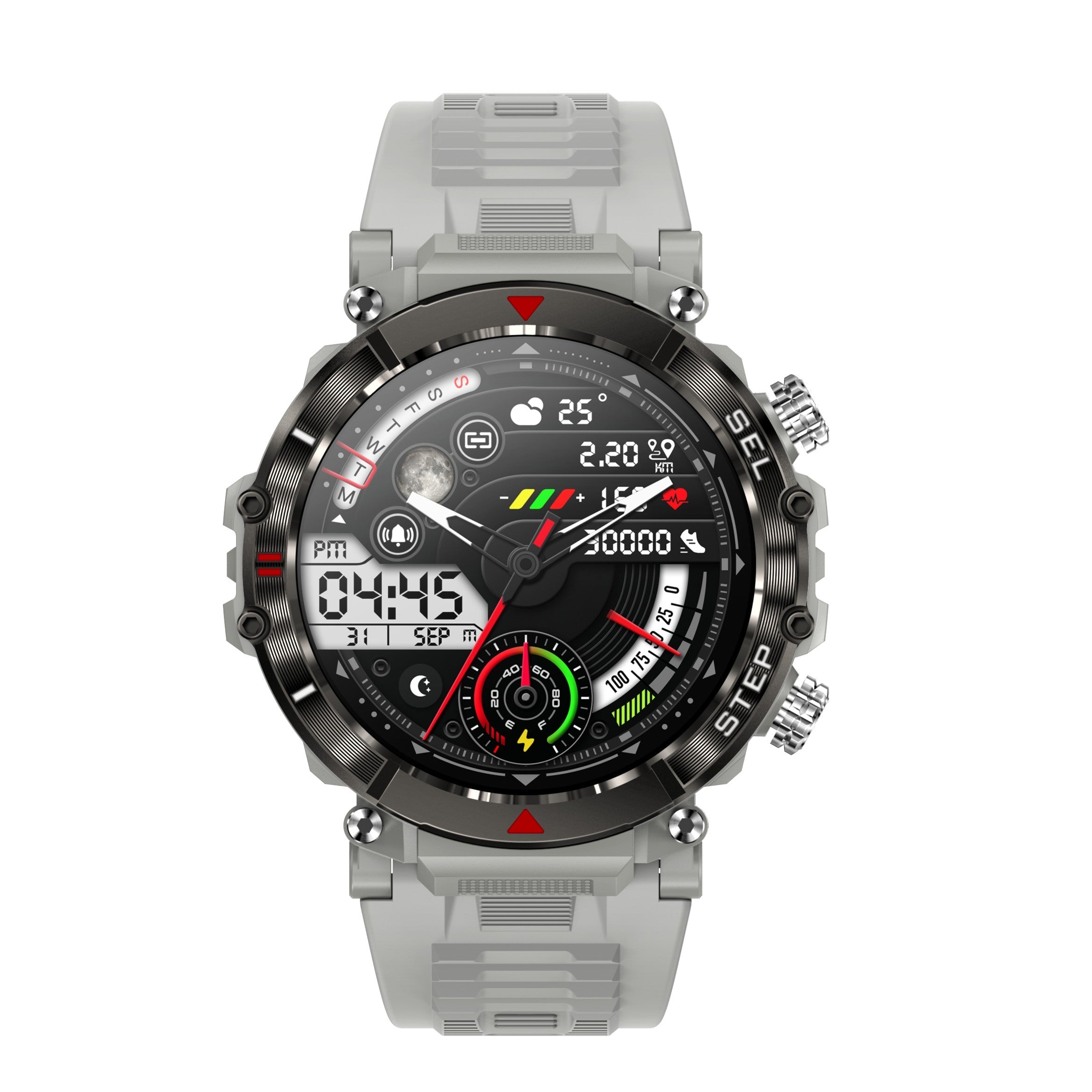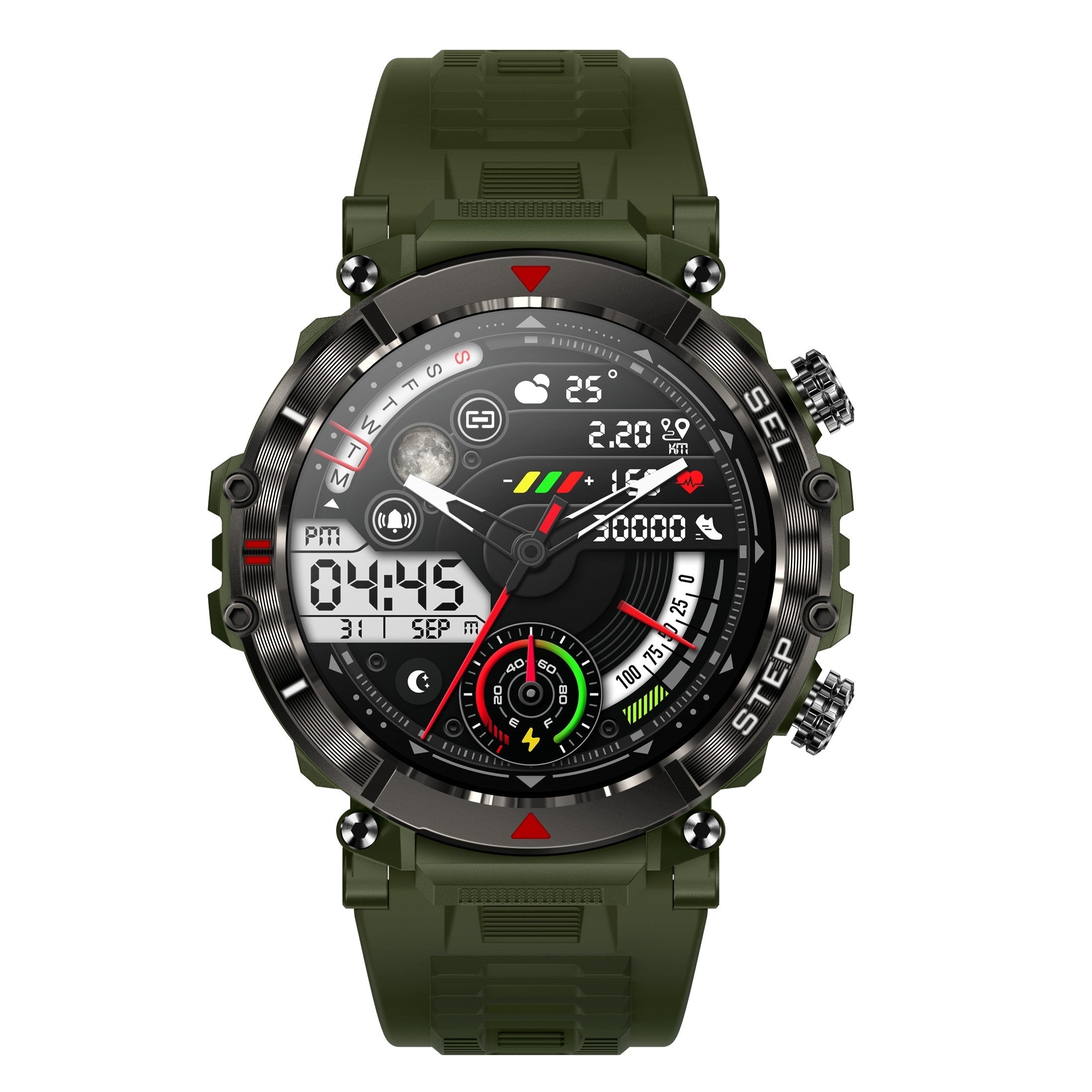 Stay active and rugged with our feature-packed men’s watch. Track your steps, sleep, and calories burned. Enjoy call and SMS reminders, and 24-hour heart rate, blood pressure, and blood oxygen monitoring.