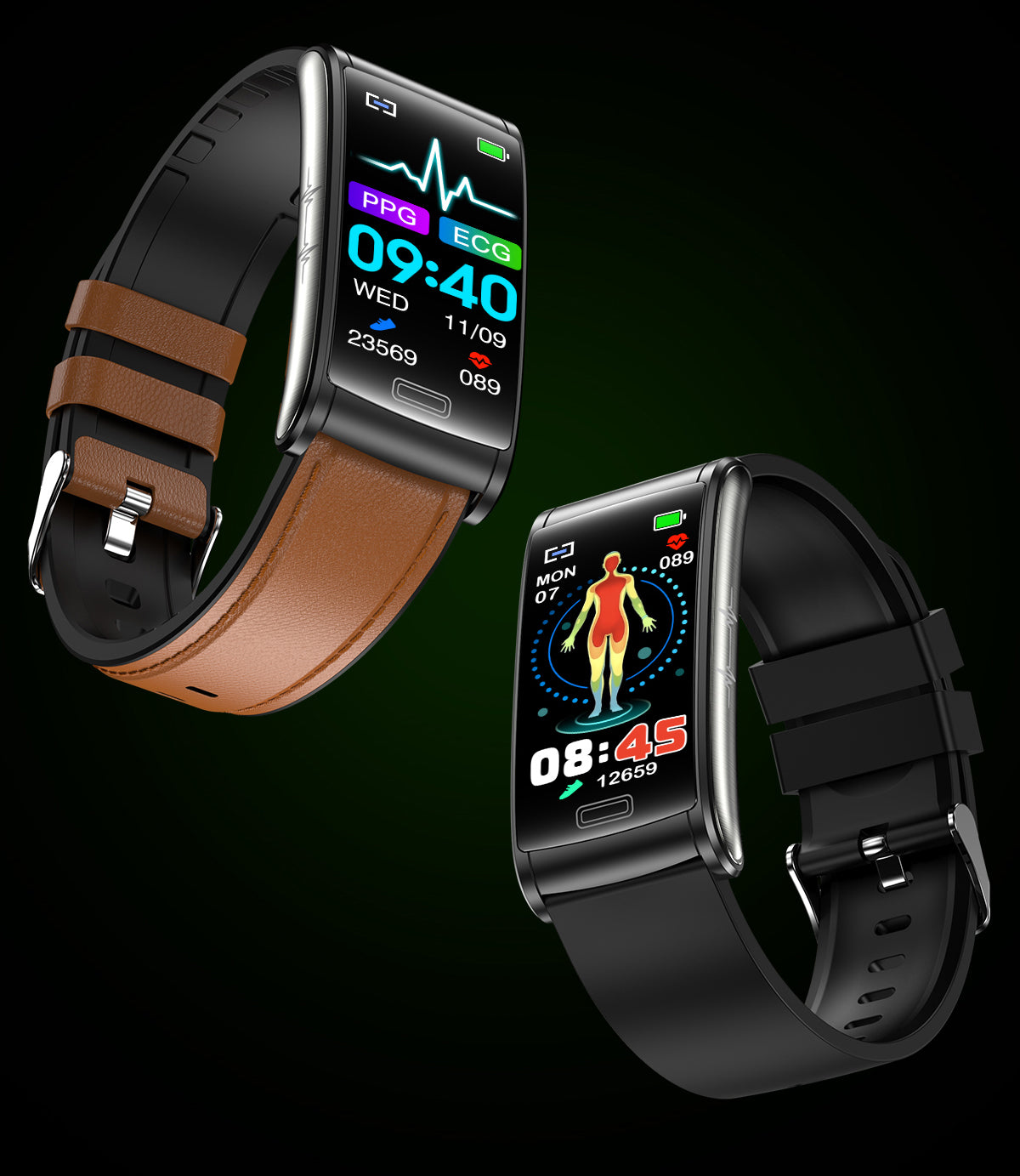 Integrating PPG+ECG measurement technology, PPG photoelectrically measures heart rate for automatic recording throughout the day. The new sensor supports intelligent timing monitoring, manual real-time monitoring and automatically saves data and uploads to APP to ensure the reference and accuracy of health tests.