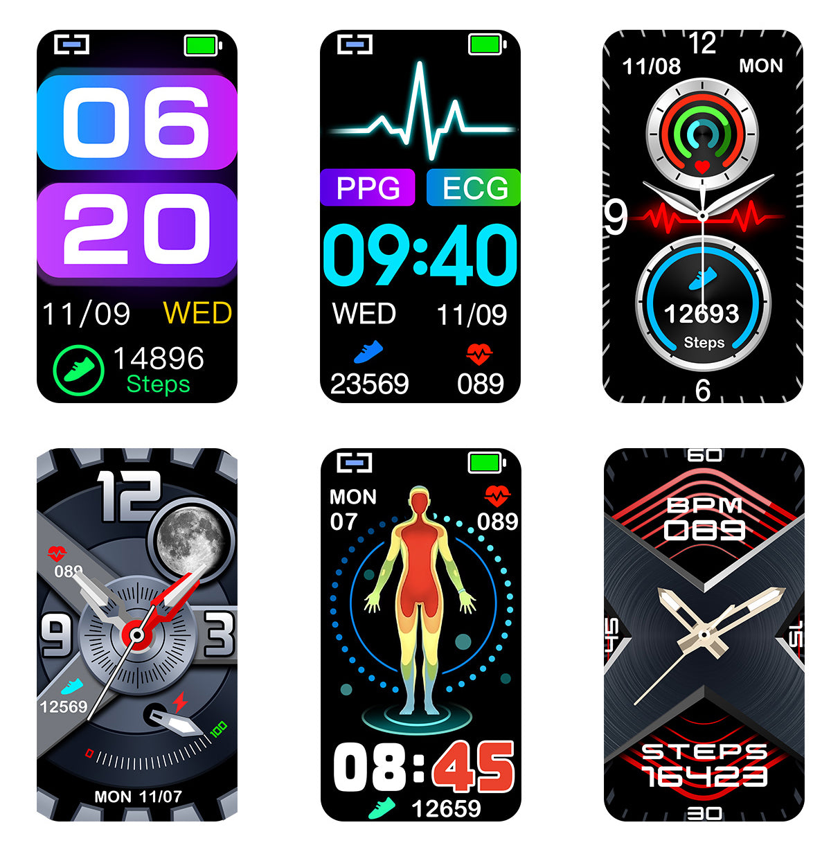 | Packing | Smart watch,charge,operation instuction,packing box,(ECG and ECG band are optional) | |